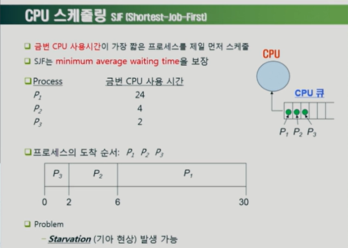 문제점: starvation(무한정 기다리는 현상) 발생가능