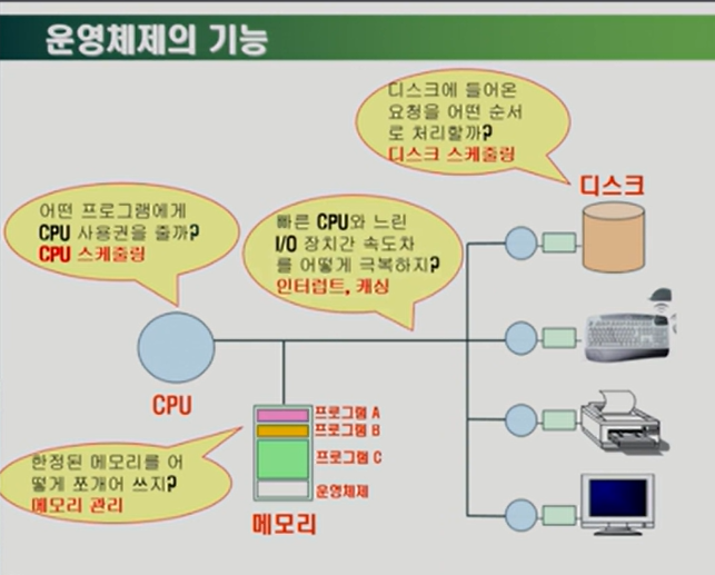 운영 체제 기능: 컴퓨터 시스템을 편리하게 사용할 수 있는 환경을 제공