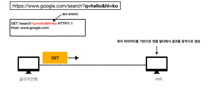 - 서버에 전달하고 싶은 데이터는 query(쿼리 파라미터, 쿼리 스트링)을 통해 전달
