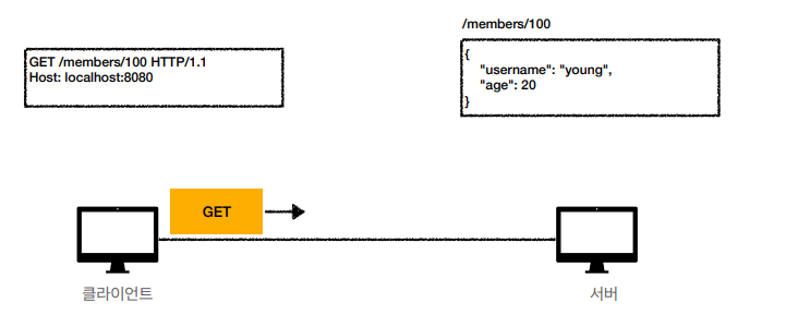 members/100을 url에 넣고 get방식으로 서버에 request하면