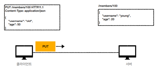- 리소스를 통째로 대체, 리소스가 없으면 생성 (덮어쓰기)