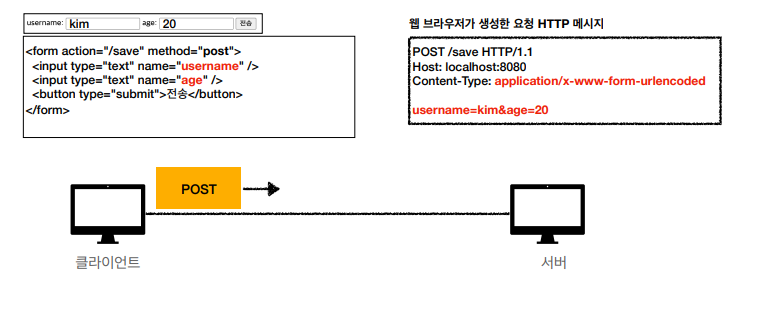 - 메시지 바디를 통해 서버로 요청 데이터를 전달