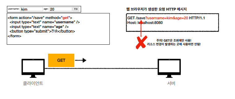 단, GET은 조회에서만 사용해야하고, 리소스 변경이 발생하는 곳에서 사용하면 안됩니다.