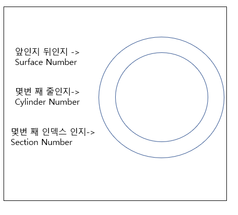 Surface Number && Cylinder Number && Sector Number 로 구성되어 있다.