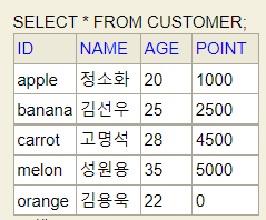 CUSTOMER 테이블 전체 출력하기