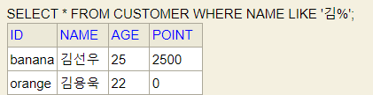 SELECT * FROM CUSTOMER WHERE LIKE '김%';