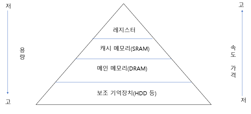CPU 가까이에 위치(CPU 안에 있지 않음)하여 CPU가 처리할 내용물을 일시적으로 저장하는 장치입니다. 전원의 공급이 차단되면 내용물이 지워집니다.