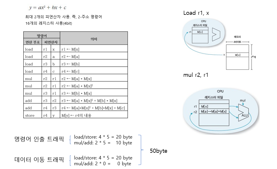 - 자주 쓰는 데이터를 레지스터에 두므로 cpu - 메모리간 데이터 트래픽이 줄어듭니다.