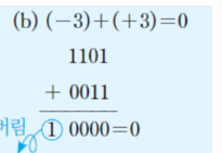 -3 + 3 = 0입니다. 이를 이진수로 표현하면 1101(2) + 0011(2) = 0입니다. 4비트를 넘어가는 수는 버리기 때문입니다.